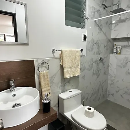 Die Gäste haben Zugang zu Selbstversorgungsmöglichkeiten wie einer Kaffee-/Teemaschine, Küchenutensilien und Glasgeschirr in einer Küche. Diese Unterkünfte liegt nur wenige Schritte entfernt von der Bushaltestelle Flores Cargo.